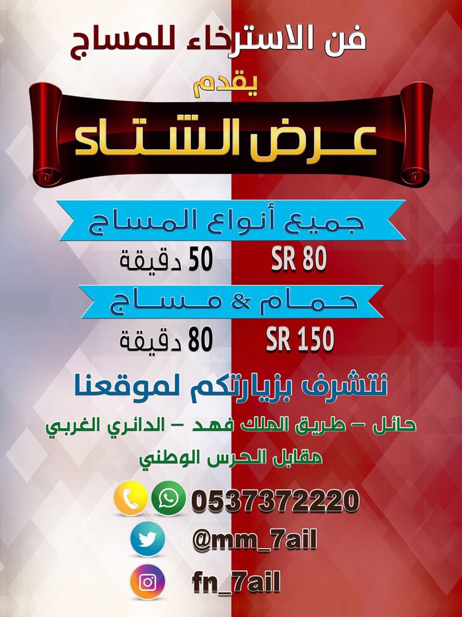 تخفيضات حائل Pa Twitter فري تايم للمساج عرض ساعه كامله ب 80 ريال فقط العرض متوفر في جميع الفروع