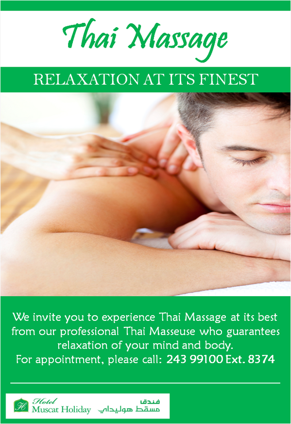 Hotel Muscat Holiday على تويتر Thai Massage Anyone Contact Us At 243 99 100 Ext 8374 Http T Co M1d5dkgrbz